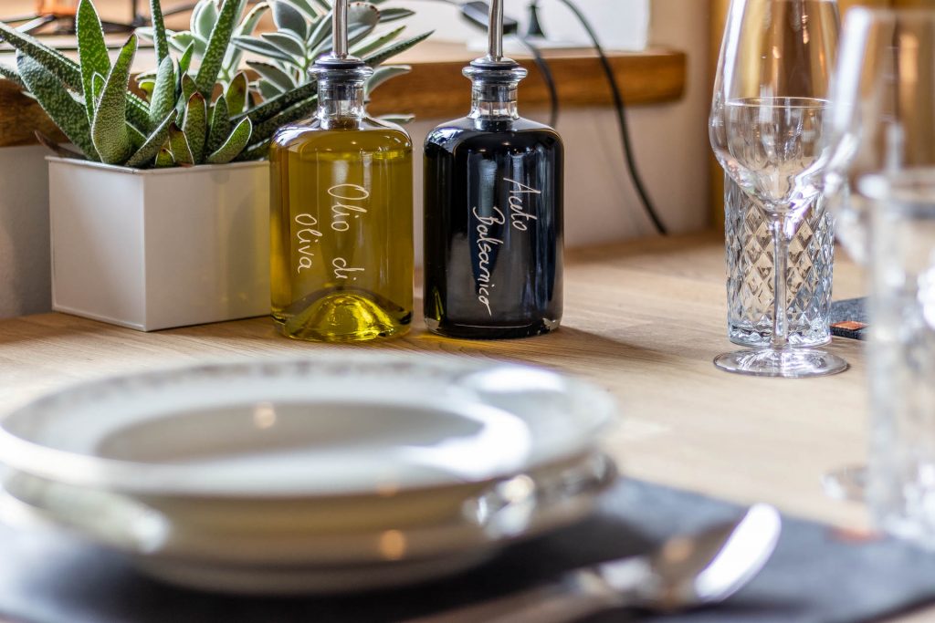 - Olivenöl, Bratöl, Essig, Salz und Pfeffer